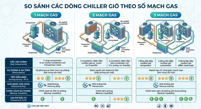 👉 Bạn đang cần chọn Chiller 1 – 2 – hay 3 mạch gas?