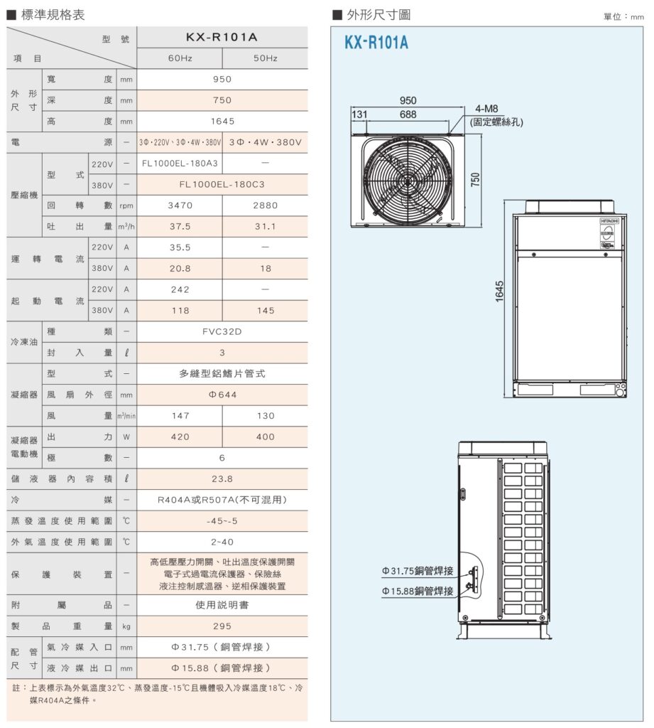 Cụm dàn ngưng Hitachi KX-R101A (Hitachi Condenser Scroll Unit KX-R101A) là thiết bị giải nhiệt quan trọng trong hệ thống lạnh công nghiệp, kho lạnh công nghiệp, kho lạnh thương mại, kho làm mát, Kho bảo quả thực phẩm, kho bảo quản rau qua, kho bảo quản thủy hải sản, kho bảo quản thịt. Sản phẩm sử dụng máy nén scroll hiệu suất cao, được thiết kế để vận hành ổn định, bền bỉ và đáp ứng nhu cầu làm lạnh liên tục cho các công trình quy mô vừa và lớn.