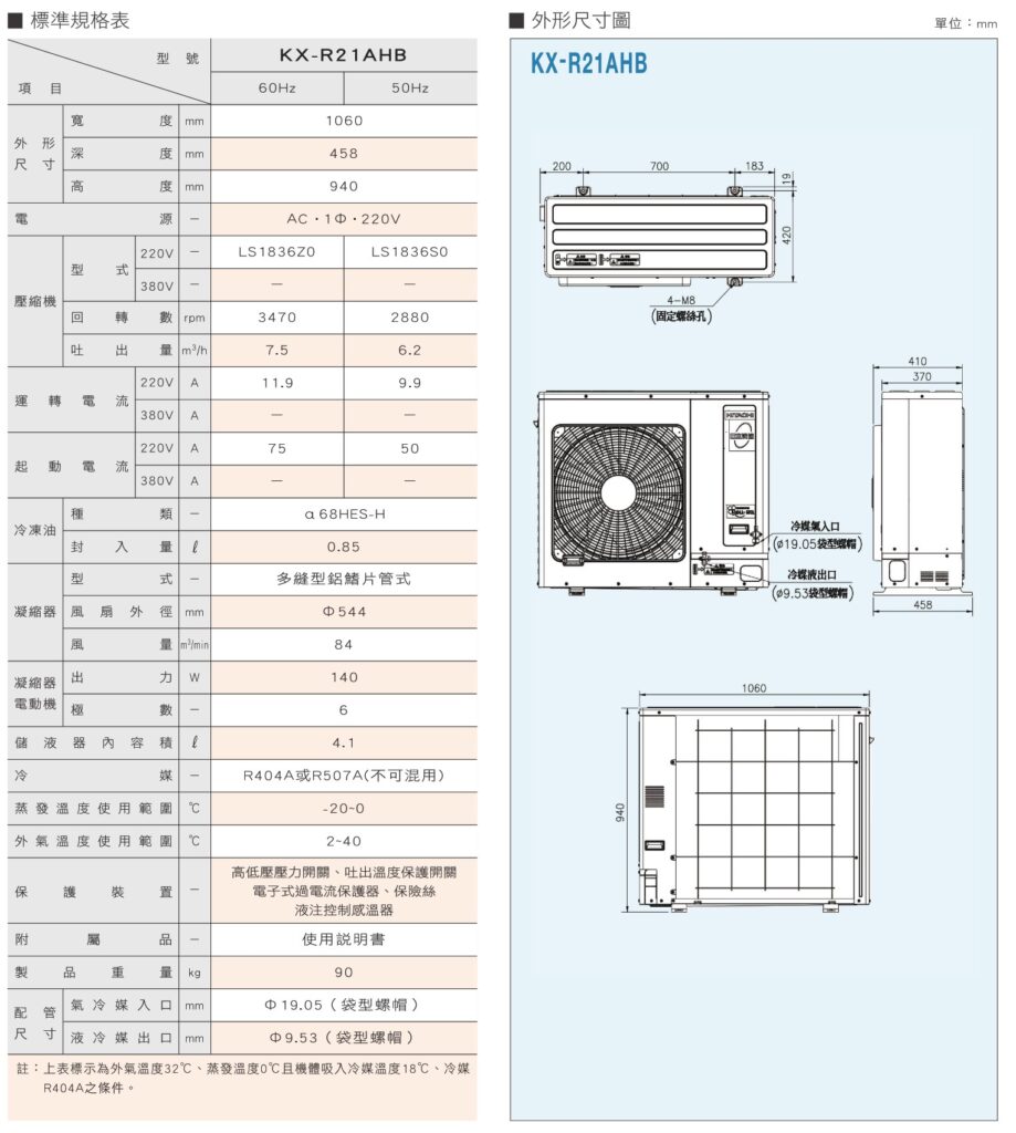 Cụm dàn ngưng Hitachi KX-R21AHB (Hitachi Condenser Scroll Unit KX-R21AHB) là thiết bị giải nhiệt quan trọng trong hệ thống lạnh công nghiệp, kho lạnh công nghiệp, kho lạnh thương mại, kho làm mát, Kho bảo quả thực phẩm, kho bảo quản rau qua, kho bảo quản thủy hải sản, kho bảo quản thịt. Sản phẩm sử dụng máy nén scroll hiệu suất cao, được thiết kế để vận hành ổn định, bền bỉ và đáp ứng nhu cầu làm lạnh liên tục cho các công trình quy mô vừa và lớn.