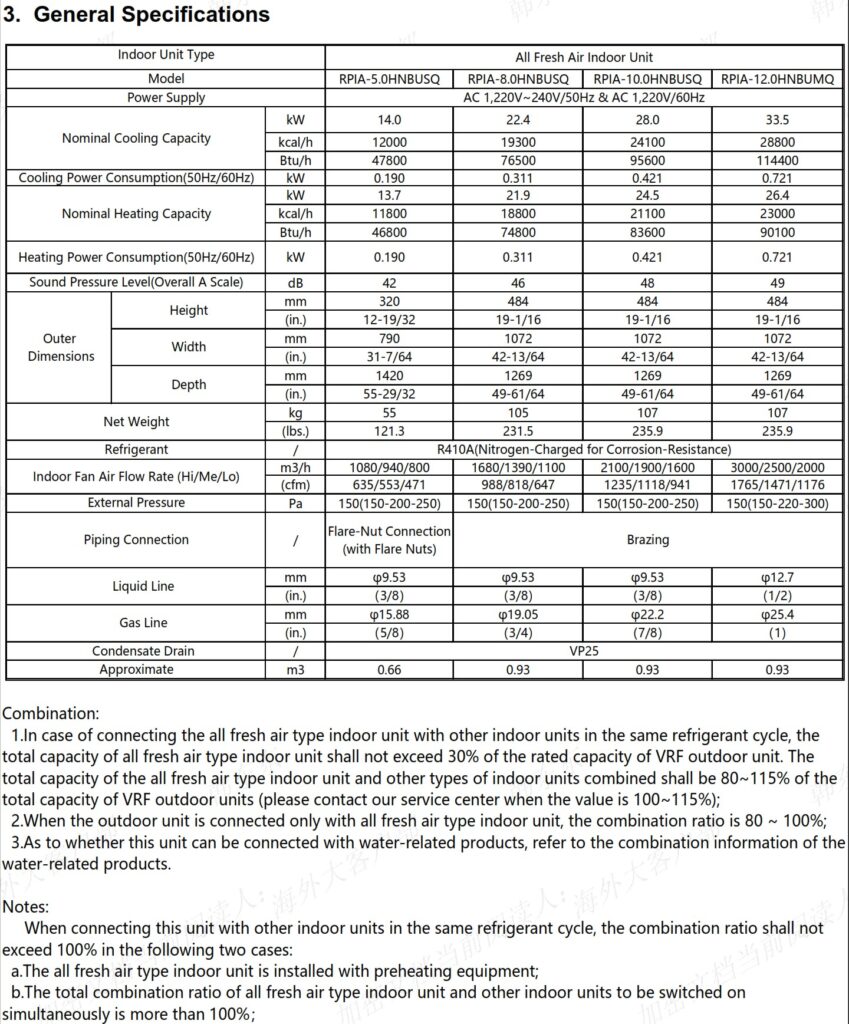 MÁY LẠNH 100% GIÓ TƯƠI (ALL FRESH AIR), OPAC HITACHI – DÒNG KFNQ INVERTER.