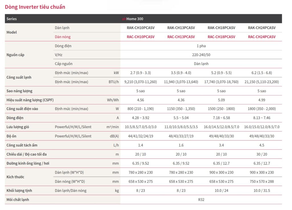 Máy lạnh treo tường 1 chiều Inverter (RAK/RAC-CH18PCASV)